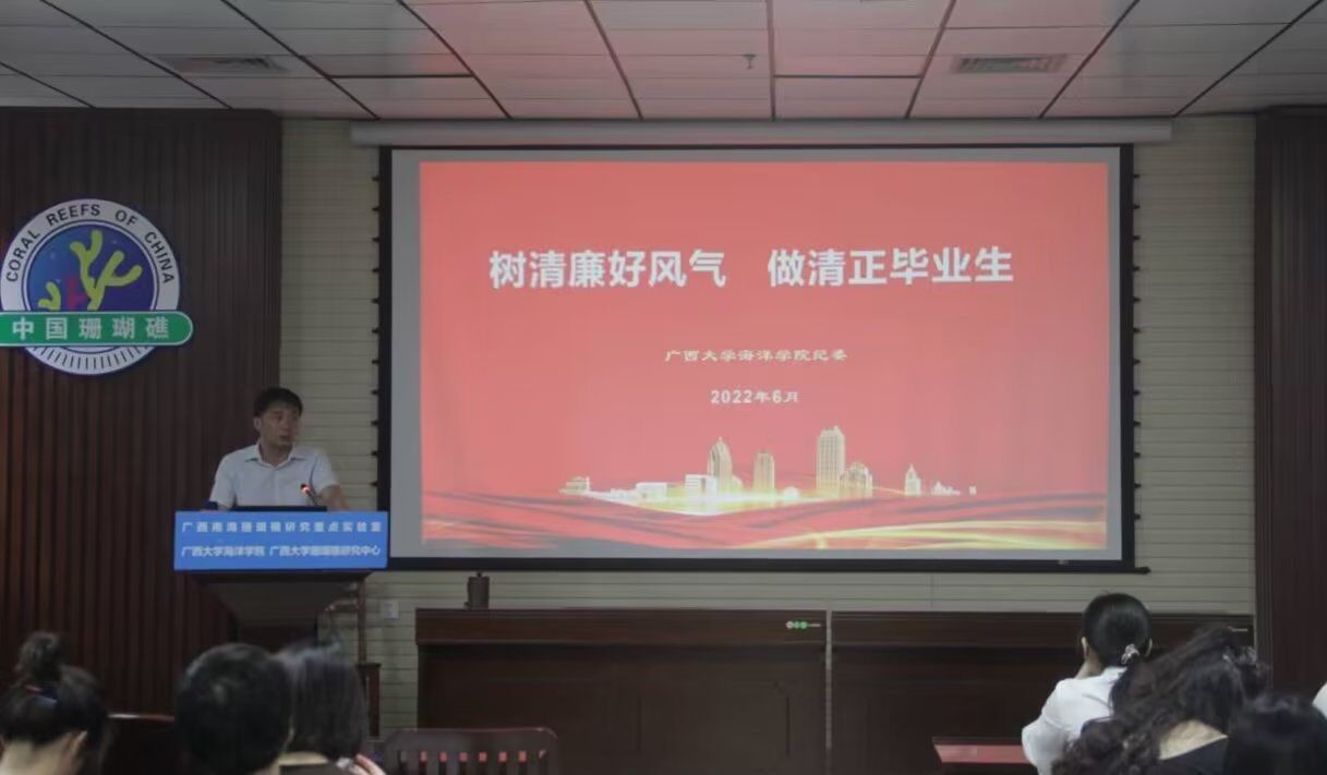 朱迅成副书记首先围绕毕业生离校的安全问题、助学贷款还款、党团组织关系转接、离校手续办理等方面的内容及注意事项详细地作解释和说明。其次,针对毕业后诚信廉政廉洁品质的养成,他告诉毕业生们,在新的工作岗位上,有机遇有挑战也有诸多诱惑和考验,需加强自身素养,提升法律意识,坚守法律红线,严守廉洁底线,做遵纪守法、廉洁奉公的践行者与捍卫者。最后,他对2022届毕业生对毕业生提出几点希望:要不断加强自身修养,廉洁自律;要谨慎交友,自觉净化自己的社交圈、朋友圈、生活圈;要爱岗敬业,在基层中奉献,努力作出成绩;要饮水思源,不忘母校恩泽,助推母校新发展,继续关心、支持母校的建设和发展,共享母校成功的喜悦。(林玉华/文 团委员工会/图 周剑/编辑 朱迅成/审核)