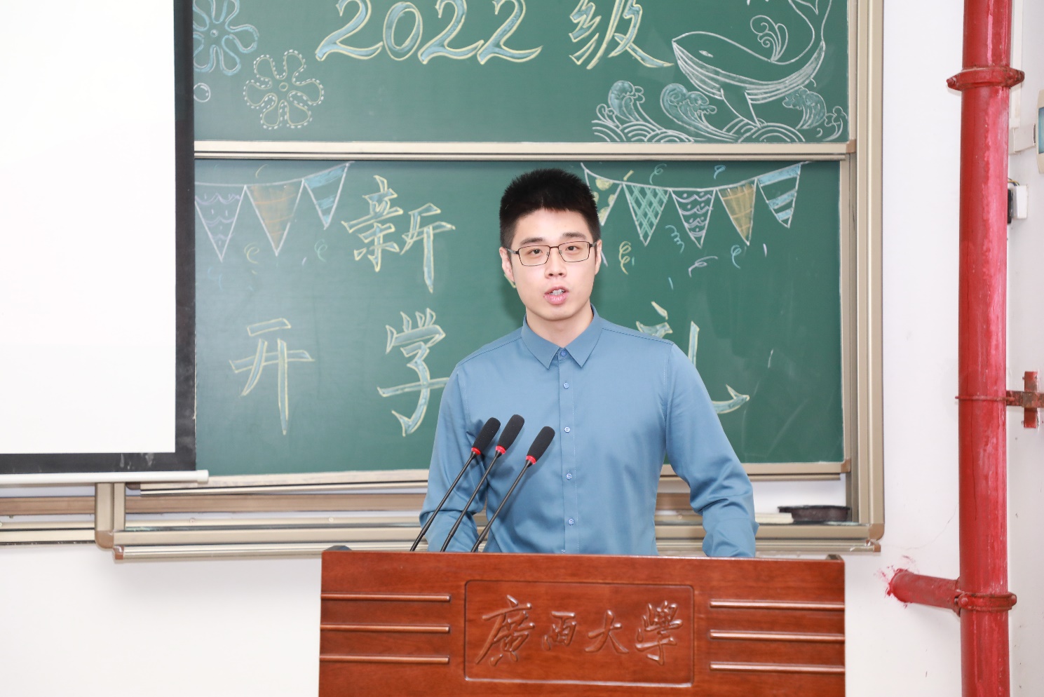 2022级本科生吴国梁、2022级硕士研究生胡思雨代表新生发言。