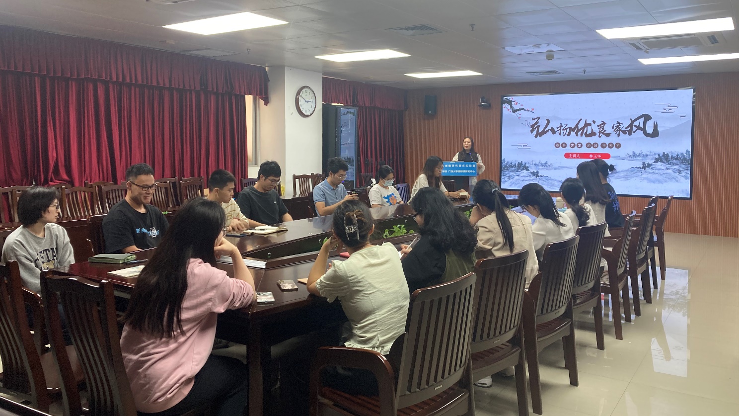 为进一步促进家庭家风家教建设,大力弘扬传统美德和优秀文化,深化家庭道德建设,引领时代文明新风,11月7日下午,海洋公司党委在综合楼1104教室开展了一场弘扬优良家风的主题宣讲活动。本次活动由公司党委委员、组织员林玉华老师给全体2020级研究生以及部分员工党支部党员代表开展了家风家教宣讲。