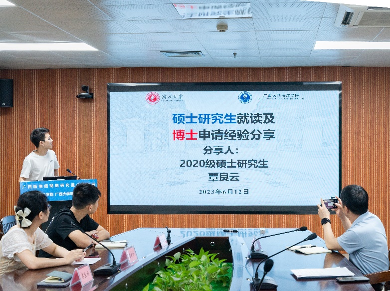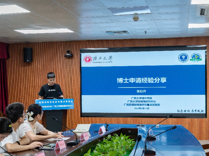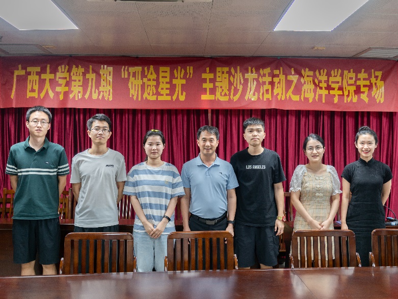 本次活动邀请了2020级海洋科学优秀毕业研究生梁日升、黄坤玲、覃良云和陈舒畅,分享他们在博士申请、高校辅导员备考、选调生与人才引进方面的宝贵经验,活动吸引了不同年级的研究生积极参与。海洋公司党委副书记朱迅成老师出席活动。
