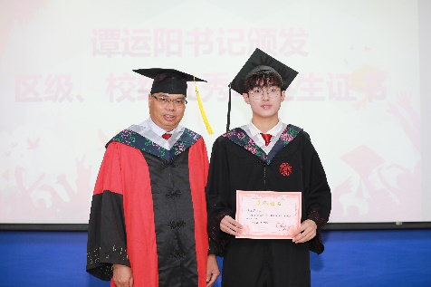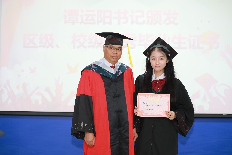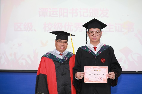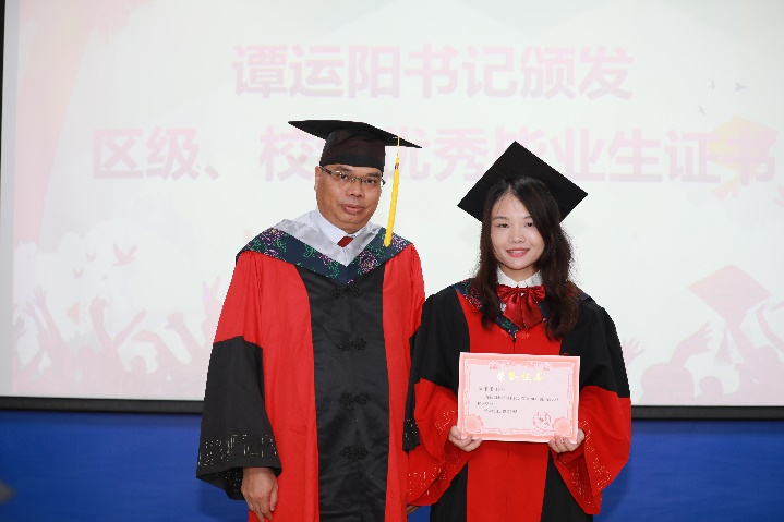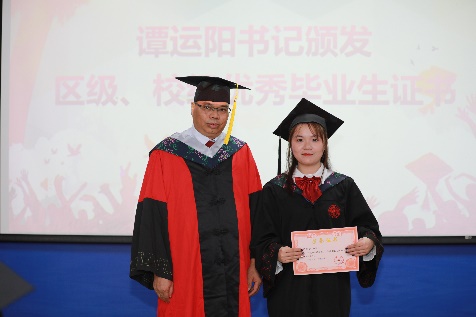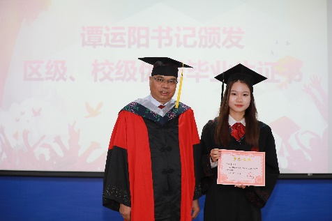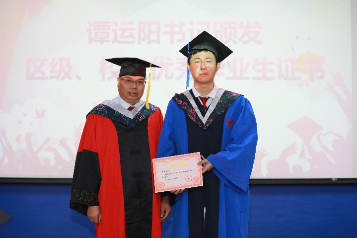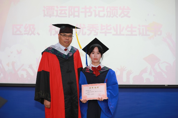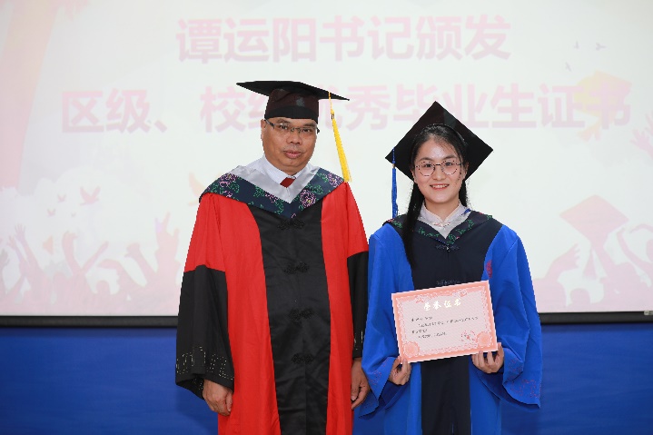 党委书记谭运阳颁发“2023届bevictor伟德官网优秀毕业生”证书