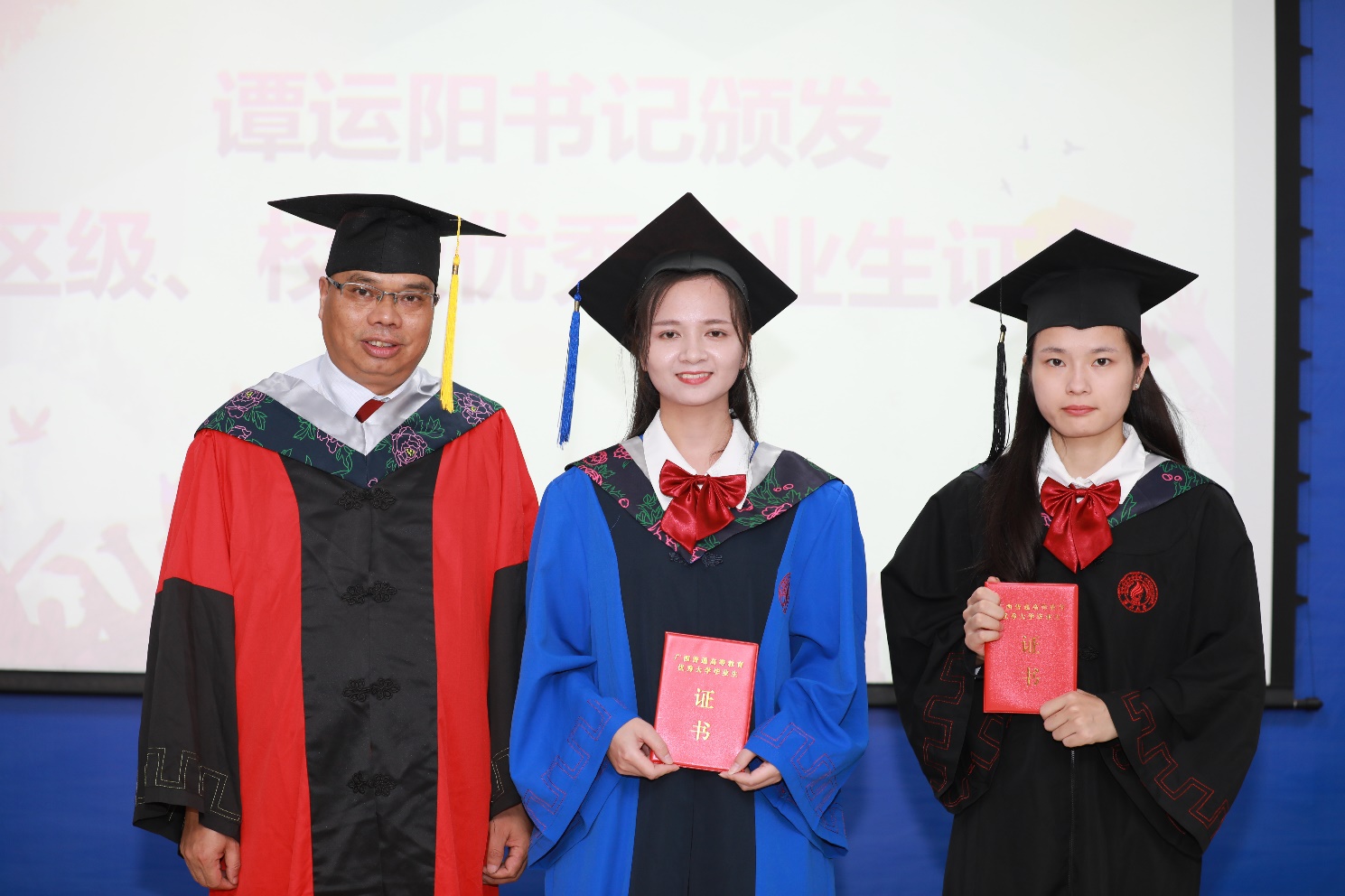 经理余克服教授逐一为毕业生进行拨穗礼、授予学位、颁发学位证书