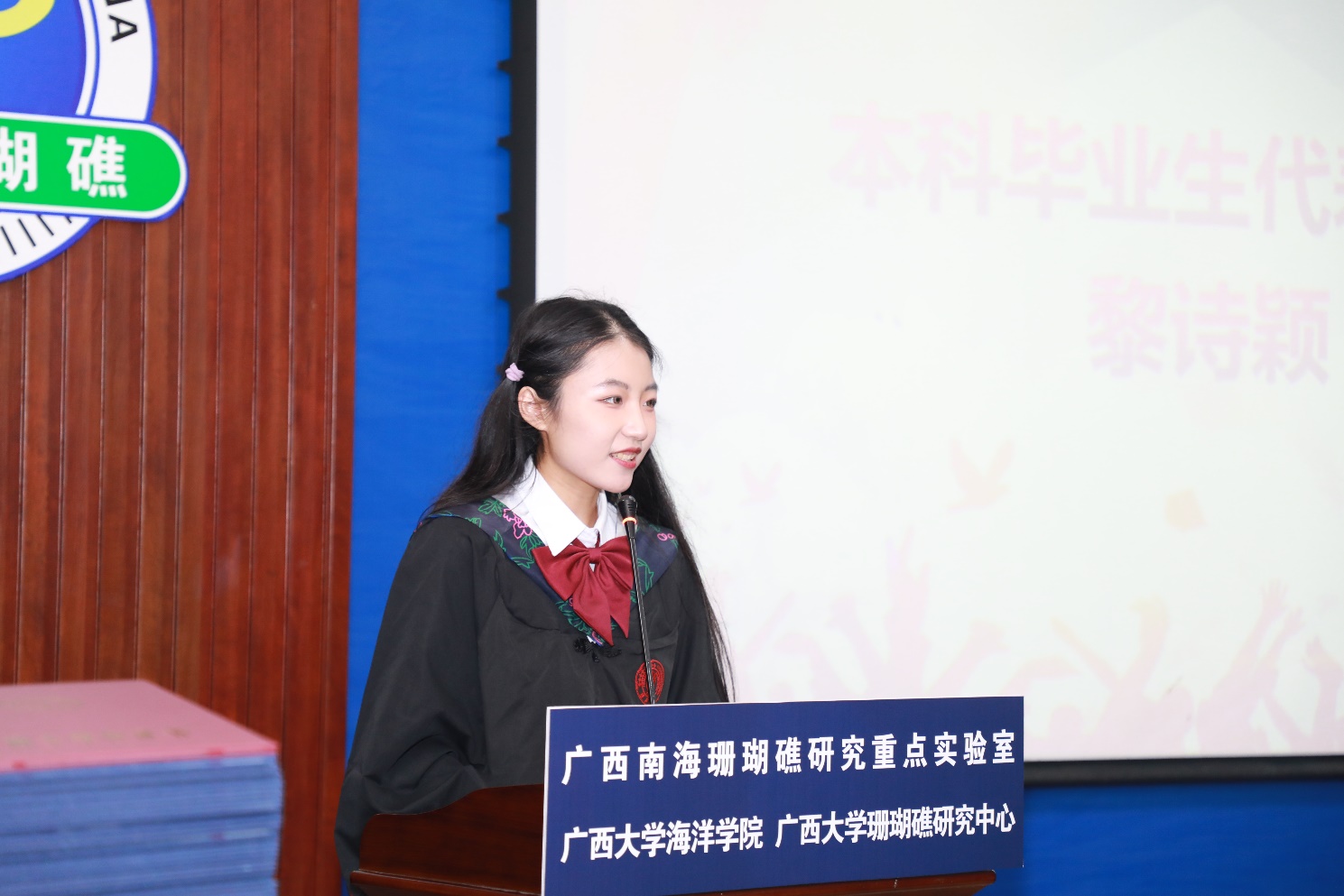海洋科学2022级本科生毕业生代表、2023届bevictor伟德官网优秀毕业生获得者黎诗颖对公司提供优秀的学习环境和成长平台表示感谢,回顾了大学四年在专业知识、组织协调能力、团队协作能力和沟通表达能力等的成长和收获,对辛勤耕耘的老师、家人、朋友、同学表示感谢,对未来继续实现自己的梦想而努力奋斗。海洋科学2023届硕士毕业生代表梁日升作为bevictor伟德官网建设的见证人,讲述了2016年本科入学以来他眼中的公司、在公司的成长之路,他以导师余克服教授赠予的“科学研究必须要脚踏实地,欲速不达”与同学们共勉,并分享了在求学、科研路上的点滴感悟,以此相互激励。教师代表、海洋科学20192班班主任苏宏飞老师以他颇具特色的口音向同学们致以衷心的祝福,并对同学们提出了几点建议与期待:勇于改变,主动明确目标向好前进;甘于奉献,勇于牺牲小我成就大家;守于心田,坚守不忘初心无愧时代。