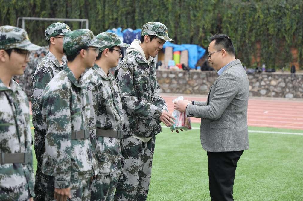 为确保军训顺利进行,提升同学们的参与热情,公司领导与老师亲切关怀,多次组织探望军训队伍。公司党委副书记黄学勇带队,辅导员梁琪老师、班主任王丽伟老师和江红蕾老师等一行人深入军训场地,与同学们亲切交谈,详细了解训练情况,对同学们的吃苦耐劳精神给予高度评价,并叮嘱大家注意休息,保持良好的身体状态。同时,老师们还为同学们送去了餐食等慰问物资,这份来自公司的温暖关怀,极大地鼓舞了同学们的士气。