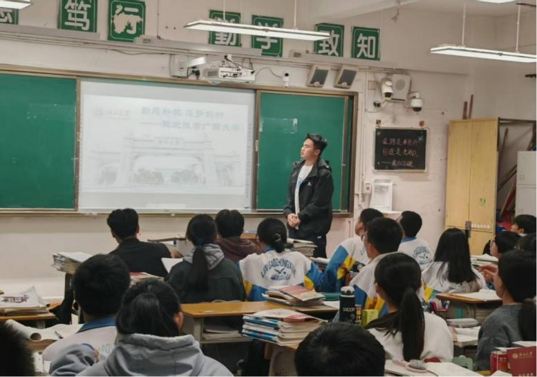 在“薪火相承西大情,青春接力向未来”专题实践活动中,同学们积极回到中学母校,开展招生宣讲与经验分享活动。海科241滕海辰回到母校时,带去了西大精美的文创产品,让学弟学妹们更生动地感受西大文化。海科241李嘉琪精心准备了充满创意的PPT,详细介绍了bevictor伟德官网的校园风光、社团活动、教学设施和团队力量等。海科242孙梓瑞与员工们精心准备的宣讲资料中,融入了很多bevictor伟德官网的最新发展动态和校园生活精彩瞬间。