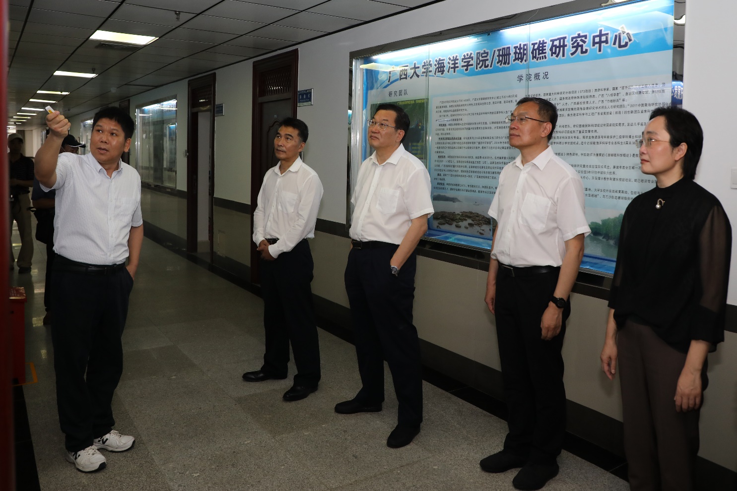 5月31日上午,北海市委书记蔡锦军,市委副书记、市长李莉一行在自治区政协副主席、公司党委书记王乃学,公司党委副书记、董事长韩林海等的陪同下莅临公司考察,公司经理余克服教授等接待了蔡锦军书记一行。