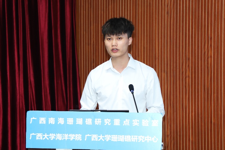 阳恩广同学(导师:黄雯博士)主要对南海两个纬度澄黄滨珊瑚的温度胁迫进行了相关研究,其论文题目是《西沙与大亚湾澄黄滨珊瑚对高、低温胁迫的响应差异及其分子机制研究》。读研期间,担任院研究生会文体部负责人,参与国家自然科学基金和广西科技重大专项等课题的研究,并以第一作者身份在北大核心期刊《基因组学与应用生物学》上发表了一篇论文:《南海不同纬度澄黄滨珊瑚(Porites lutea)对异常低温的响应》,还有一篇SCI论文正在审稿中《Lower cold tolerance of tropical Porites lutea is possibly detrimental to its migration to relatively high-latitude refuges in the South China Sea》。