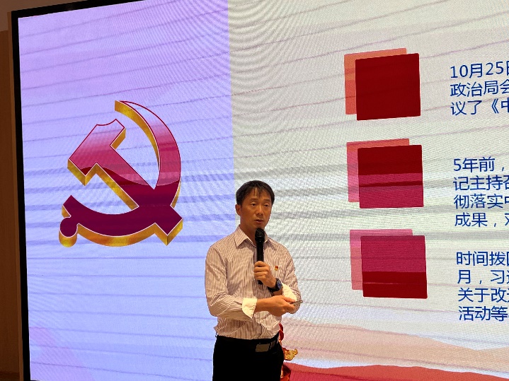 在学习交流区,大家简单畅谈了参观学习体会后,还开展了党风廉政建设主题讲座。党委副书记朱迅成同志以《努力把握规律性认识 深刻体悟“第二个答案”》为主题给大家上了一堂微党课。他首先以党的二十大报告为指引,解读党找到了自我革命这一跳出治乱兴衰历史周期率的第二个答案;接着,他谈到我们党深化运用“四种形态”,保持惩治腐败的强大力量,持之以恒加固中央八项规定堤坝;用多个高校师生违纪的案例开展以案明纪教育,告诫大家作为基层党务干部风险点有学术不端、师德师风、评先评优、党员发展、不作为和乱作为等方面,提出希望我们要加强党风党纪的建设。最后,他指出我们党务干部要做好表率,要深入学习贯彻党的二十大精神,深刻领悟“两个确立”的决定性意义,增强“四个意识”、坚定“四个自信”、做到“两个维护”和“三个务必”,为全面推进中华民族伟大复兴作出新贡献。
