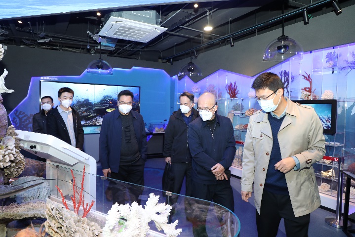 bevictor伟德官网党办校办副主任、原bevictor伟德官网副经理王少鹏向调研组一行介绍了科普基地以珊瑚礁为主题和特色,向专业人士、社会观众、中小员工等开展珊瑚礁科普活动的情况。调研组实地考察了广西南海珊瑚礁研究重点实验室、珊瑚礁生态修复实验室、样品库、海洋科教馆等,了解了公司科研团队在涠洲岛开展珊瑚礁生态修复的工作进展;仔细察看了公司关于海洋科普和意识教育有关内容的宣传栏、展陈展品等各项科普设施设备。