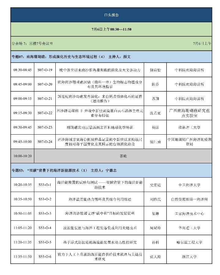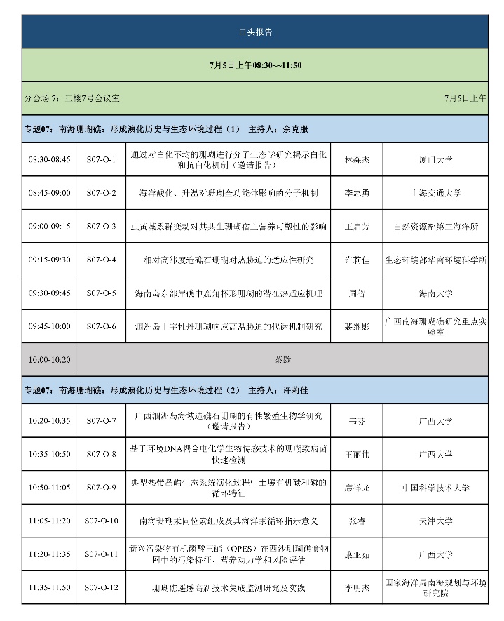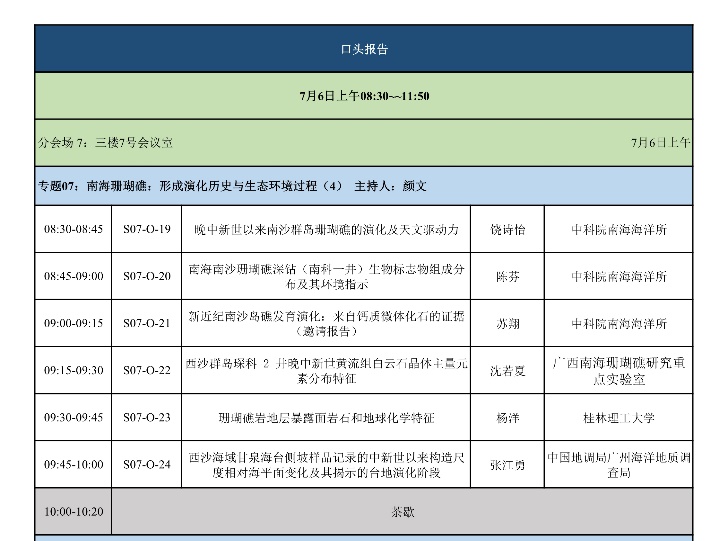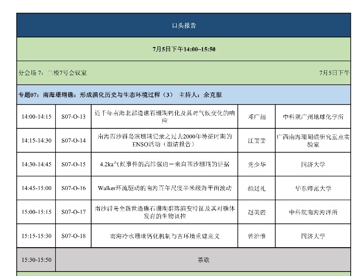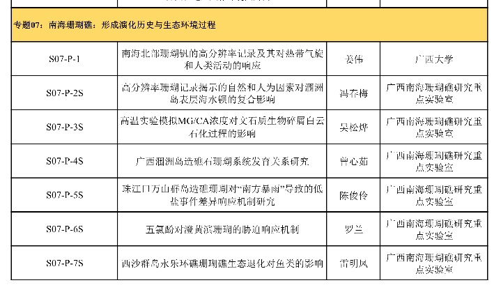 第七届地球系统科学大会“南海珊瑚礁”专题会场