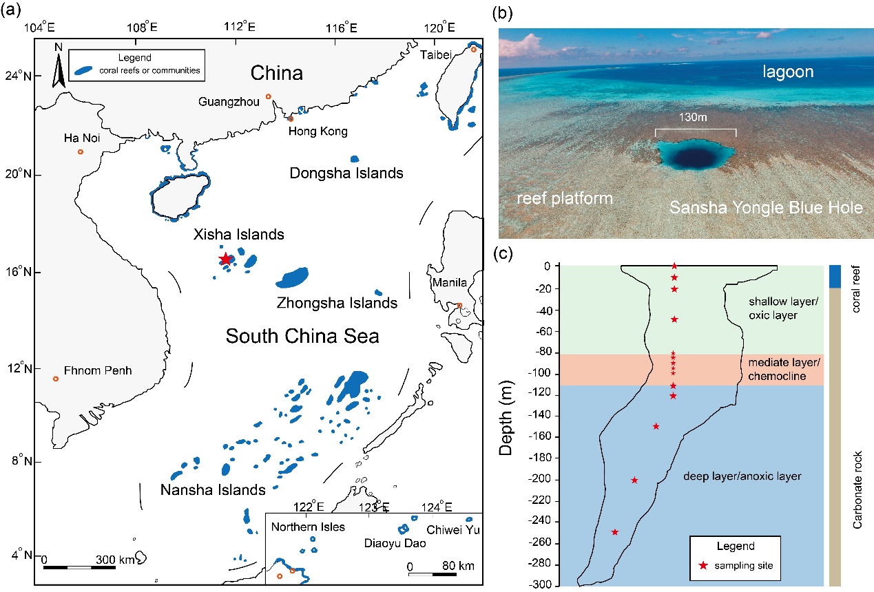 近日,公司海洋生物与生态教研室陈飚博士等在中国科公司一区Top期刊Microbiology Spectrum发表了题为“The diversity, community dynamics, and interactions of the microbiome in the world’s deepest blue hole: insights into extreme environmental response patterns and tolerance of marine microorganisms”的研究论文。该研究基于微生物组学技术,对西沙群岛珊瑚礁区的世界最深蓝洞—三沙永乐龙洞(300.89m)14个深度剖面的水体微生物进行了研究,解析微生物主要功能类群(虫黄藻、细菌、真菌以及古菌)在不同深度极端环境下的多样性变化、生态特征及其生物地球化学循环功能差异。