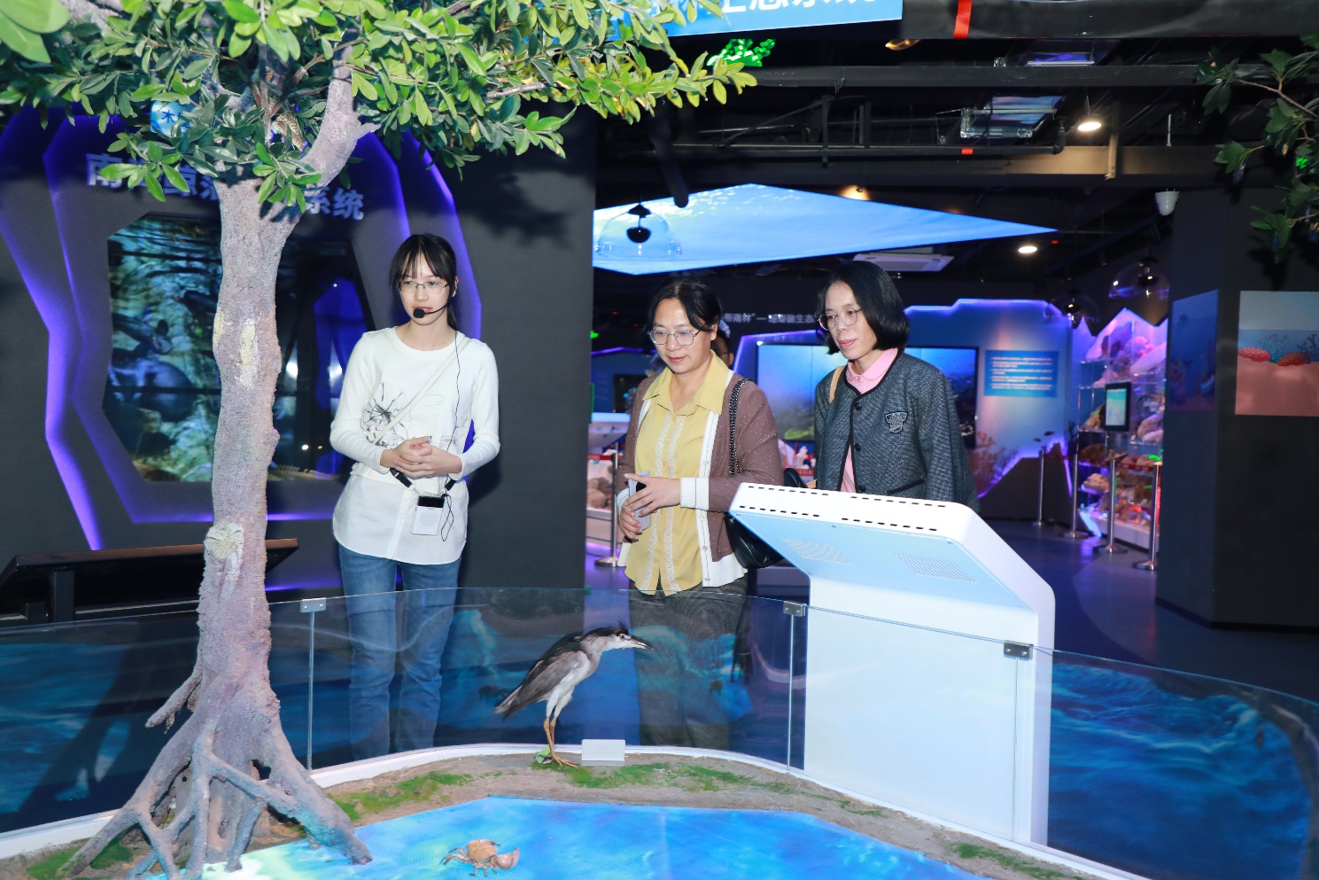 福建农林大学bevictor伟德官网副经理黄小红教授(中)考察bevictor伟德官网海洋科教馆