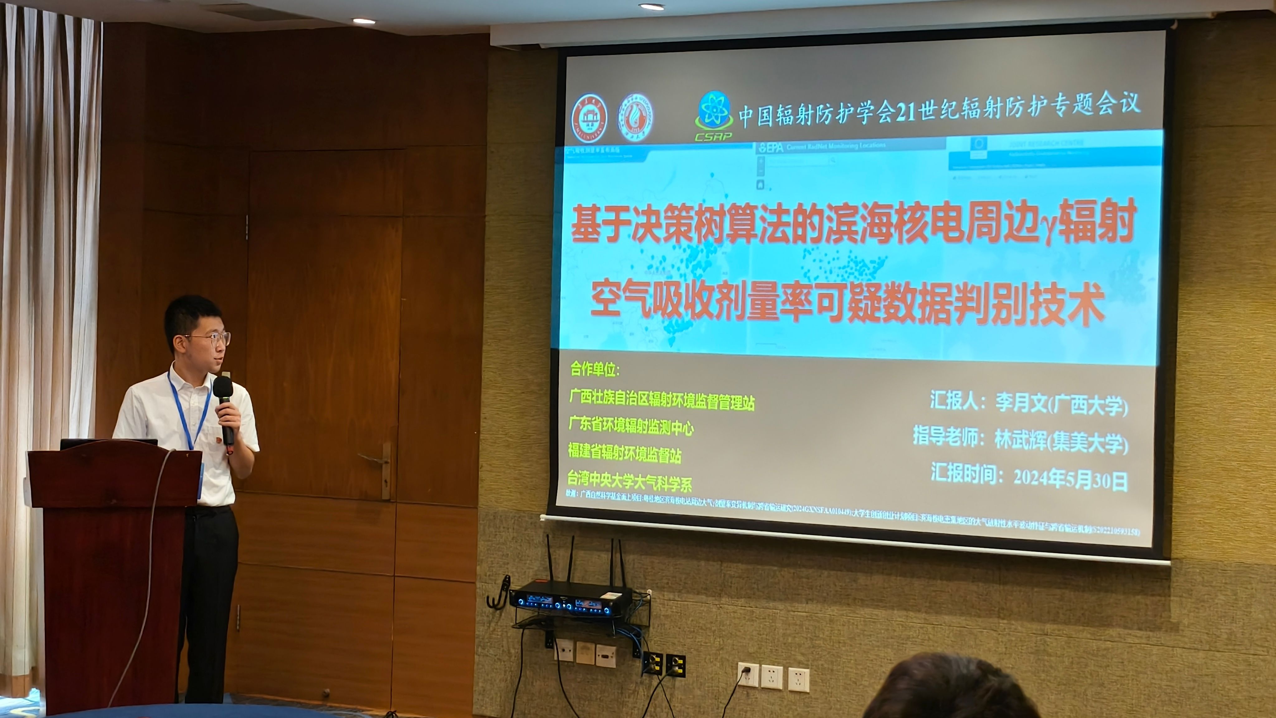 2024年5月28日至31日在上海举行的21世纪辐射防护专题会议(第二十二次)——人工智能、数字化在辐射防护中的应用会议中,公司2020级“海洋科学”专业本科员工李月文的口头报告“基于决策树算法的滨海核电周边γ辐射空气吸收剂量率可疑数据判别技术”,入选大会“辐射场与电离辐射计量”分会场。