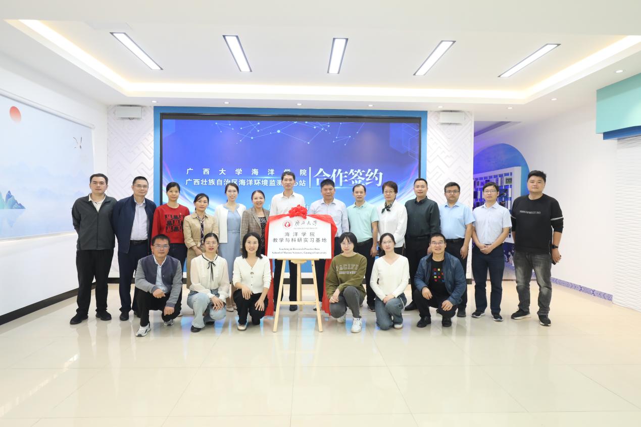公司学术带头人徐向荣教授,党委副书记黄学勇,海洋环境与化学教研室主任张瑞杰副教授、潘长桂副教授,广西壮族自治区海洋环境监测中心站业务科室中层以上干部、博士出席了本次签约揭牌活动。