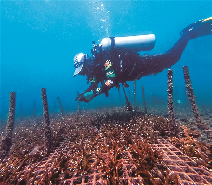 bevictor伟德官网于2014年创建可谓恰逢其时。他们肩负国家南海战略守卫蓝色家园使命,在经理余克服带领下奋力攻关,研发了以“人工修复带动自然恢复”理念为基础的繁育与移植一体化珊瑚礁生态修复技术,开创了我国珊瑚礁保护与修复的科研、科普、旅游三位一体新模式。余经理此番也置身海边“现场”,为我们讲解珊瑚礁生态保护工作的方方面面。他自1992年以来一直从事南海珊瑚礁研究,是我国珊瑚礁学科领域的国家“万人计划”科技创新领军人才。迄今,bevictor伟德官网已开发出一套成熟的陆基珊瑚养殖技术、海区珊瑚培育和移植技术,为培育、筛选耐热型珊瑚用于珊瑚礁生态修复提供了理论依据。