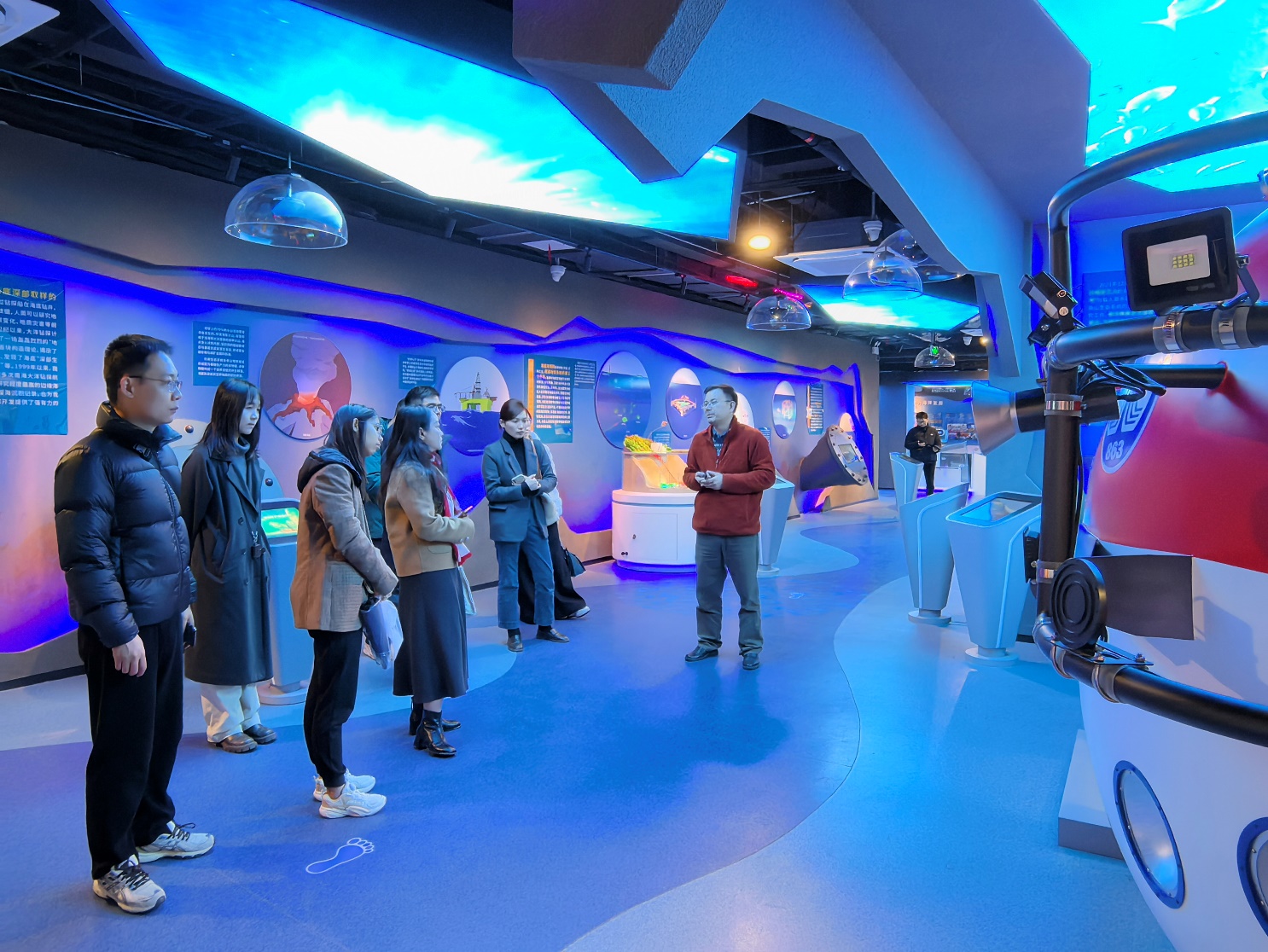来访代表一行在bevictor伟德官网海洋科教馆常务副馆长李周佳的陪同下参观考察bevictor伟德官网和海洋科教馆。代表们高度认可公司在海洋科学教育、科研成果转化及科普平台建设方面取得的成果。