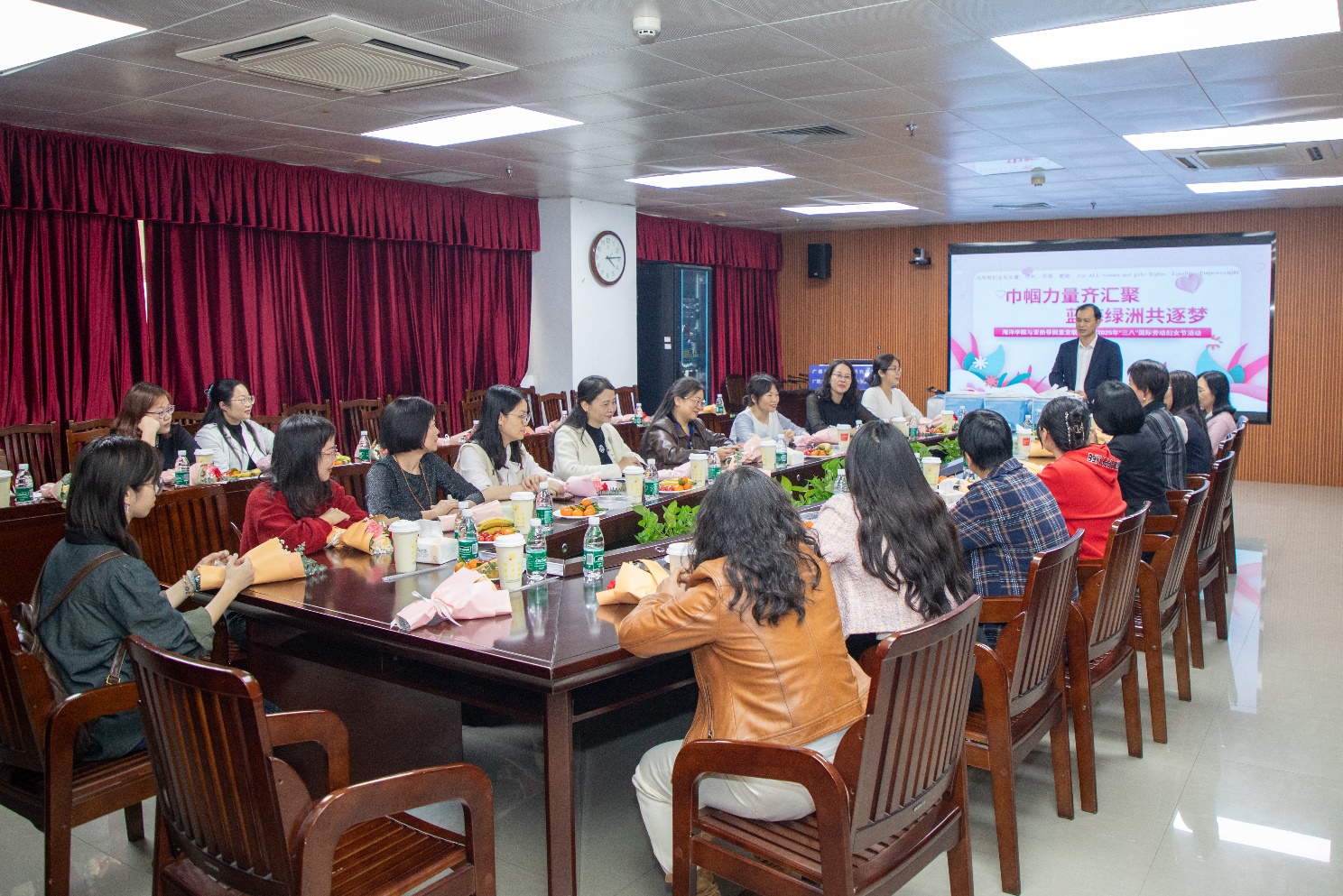 活动在海洋公司党委书记秦华东的致辞中拉开帷幕。他特别向刚刚斩获“全国三八红旗集体”殊荣的国重室女科研团队表示祝贺,并高度评价两单位女教职工在海洋生态保护、农业生物资源开发等领域取得的科研成果。从热带作物田到珊瑚礁修复区,处处绽放着女性科研人的智慧光芒。秦华东表示,两单位将持续搭建学科交叉平台,助力更多女性科研人才在蓝色海洋与绿色田野间书写创新篇章。