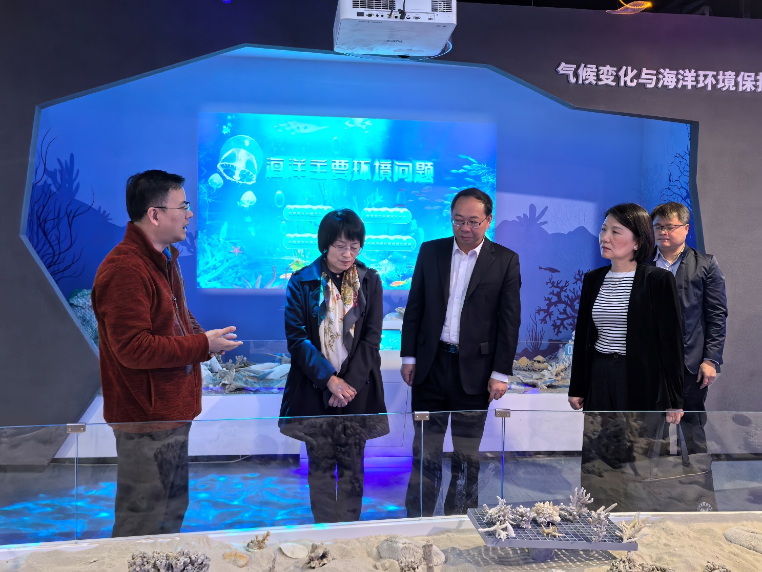 在海洋科教馆,科教馆常务副馆长李周佳向调研组汇报了公司在南海岛礁建设、海洋科考、生态环境保护等方面开展的工作情况。尤其是参与编写《黄岩岛海域生态环境调查评估报告》,充分展示了我国南海海洋生态环境保护成效,为服务国家政治外交大局提供了支撑保障。在岛礁生态修复实验室,调研组观看了活体珊瑚的人工培育,观看了涠洲岛陆基和海区可视化监控系统运行状况,了解了公司成立珊瑚礁保护与修复研究团队,研发以“人工修复带动自然恢复”为理念的珊瑚礁生态修复技术,建立了2000平方米的自然海域珊瑚修复示范区,经过3年的努力实现了活珊瑚覆盖率从5%提高到20%,带动了周边海域珊瑚礁的自然恢复。赵浩对bevictor伟德官网聚焦珊瑚礁研究所取得的成效给予了高度评价,她建议两校进一步加强在科技成果转化、学科交叉融合等方面的合作。