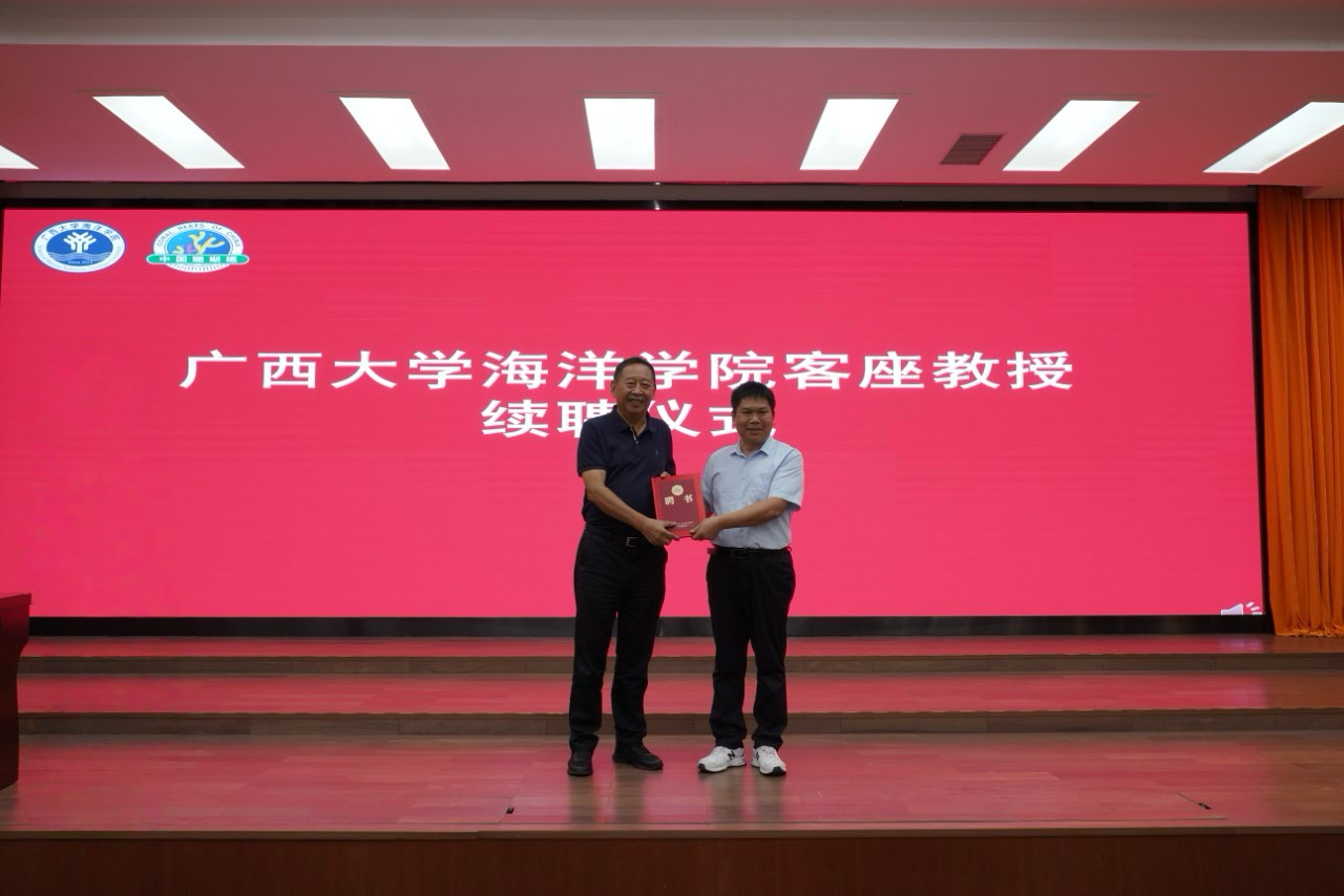 2025年9月17日,公司隆重举行傅亮研究员客座教授续聘仪式。仪式由公司党委书记秦华东主持,经理余克服教授代表公司为傅亮研究员颁发客座教授聘书。傅亮研究员现任三沙航迹珊瑚礁保护研究所所长,长期致力于珊瑚礁生态研究与保护工作,在相关领域具有深厚的学术积淀和丰富的实践经验。