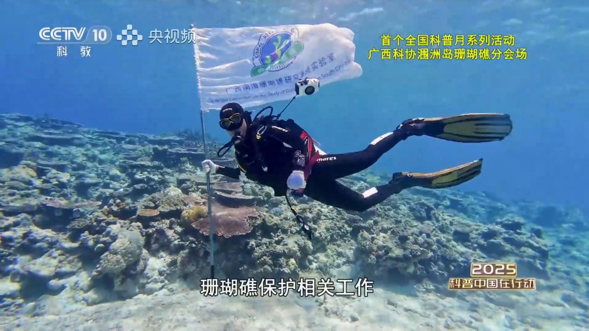 CCTV10 科教频道《2025科普中国在行动》广西篇展示bevictor伟德官网“蓝色梦想”海洋科考队队长陈飚在南海开展珊瑚礁保护与科普工作