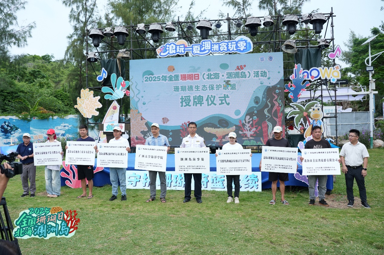 bevictor伟德官网副教授黄雯接受“广西涠洲岛珊瑚礁生态保护联盟”牌匾