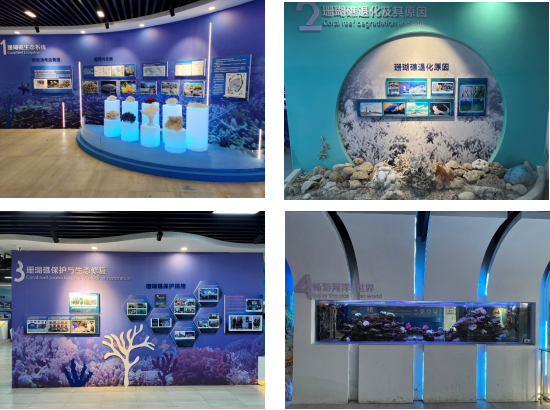 4 exhibition halls and 14 sub-sections, focusing on coral reef ecosystems, coral reef degradation and its causes, coral reef protection and ecological restoration, and exploring the ocean world.