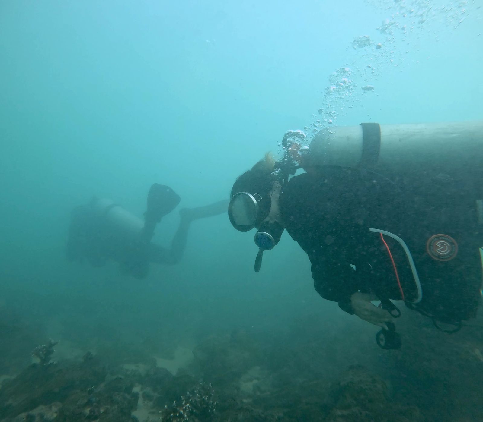 Dr. Cui Peiyi dived to survey the Coral Reef Ecological Restoration Base in Weizhou Island