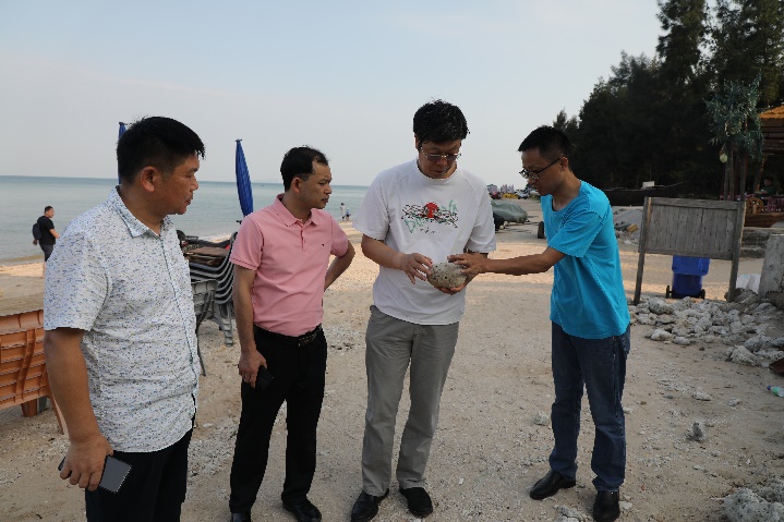 Academician Chen Fahu and other experts also inspected the geological and geomorphological landscape of Weizhou Island’s coral reefs, and made an in-depth analysis of the formation causes of the beach rocks on Weizhou Island and the paleo-climate and environmental information coral reef recorded; visited Guangxi University SSI Diving Cente and gained a detailed understanding of the center's role in coral reef scientific research and teaching. Academician Chen Fahu also put on a diving suit and equipment and went into the personally went underwater to inspect the coral breeding base and coral reef ecological restoration nursery on Weizhou Island. He witnessed the remarkable achievements of the laboratory in coral reef ecological restoration.